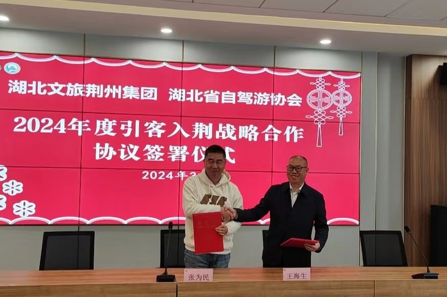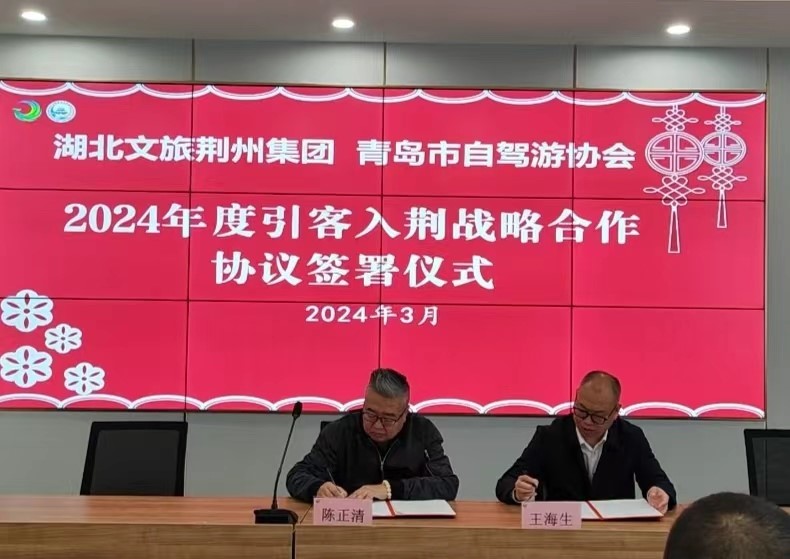 駕游荊州,遇見荊街,遇見牽手與合作。3月19日上午,湖北文旅荊州集團召開省內外旅行社及自駕游協(xié)會座談會,黨委副書記、總經理王海生分別與湖北省旅游協(xié)會自駕游和房車露營分會副會長張為民、山東省青島市自駕游與房車露營協(xié)會會長陳正清簽署戰(zhàn)略合作協(xié)議,200名旅行社和自駕游協(xié)會代表成為湖北文旅荊州集團區(qū)域代理營銷官,雙方就引客入荊、特殊區(qū)域營銷舉措達成年度及長期合作。